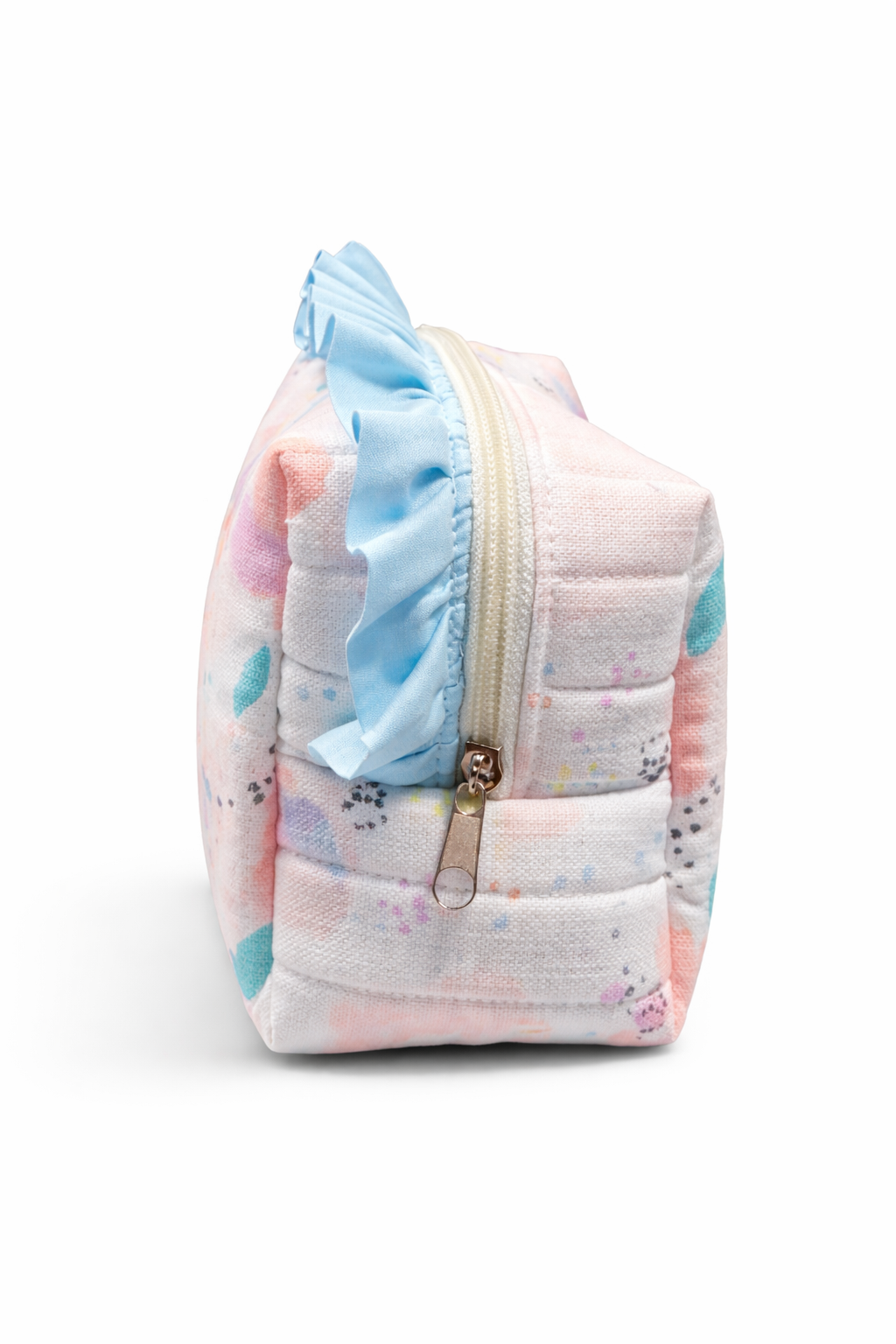 Morbido ma strutturato, ideale per contenere cosmetici, skincare o piccoli accessori. Interno foderato e chiusura con zip.